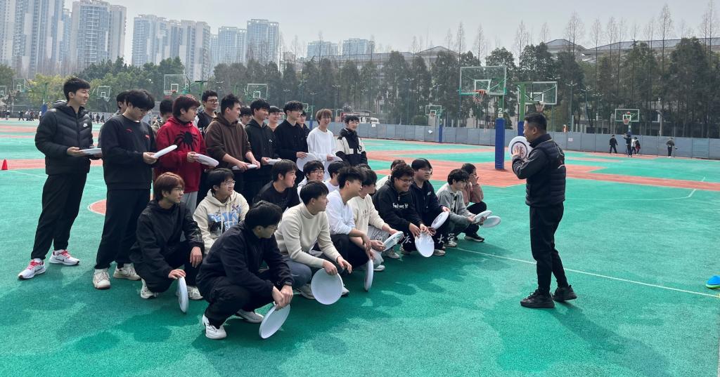演练过程中,刘洋老师以饱满的热情和专业的素养,展示了《大学体育Ⅱ》课程的精彩内容。他通过对“飞盘”生动有趣地讲解与示范,有效激发了学生的学习兴趣,营造了良好的课堂教学氛围。同时,线上评估专家杜小旺通过远程听课系统,对整堂课的教学过程进行了全面、细致地观摩与评估,后续将反馈意见与建议。